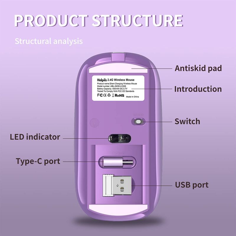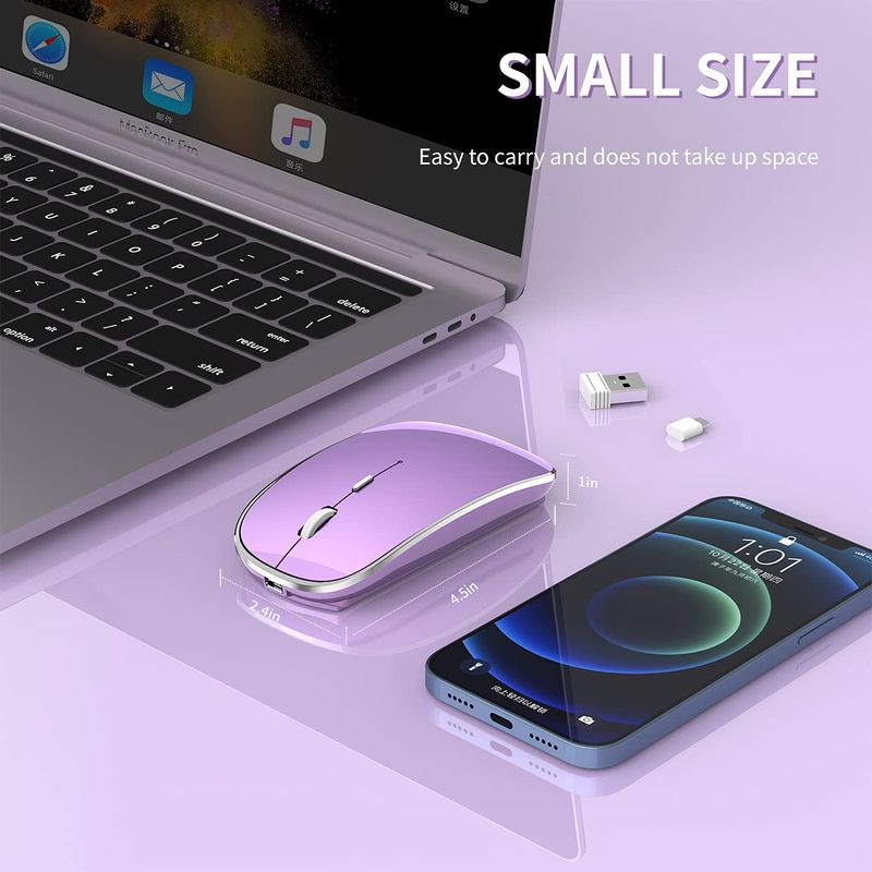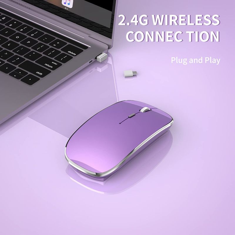 Ratón inalámbrico recargable: batería recargable de iones de litio de 450 mAh integrada con carga USB, sin necesidad de reemplazar la batería. Carga de 2 horas, puedes utilizar alrededor de 15-20 días