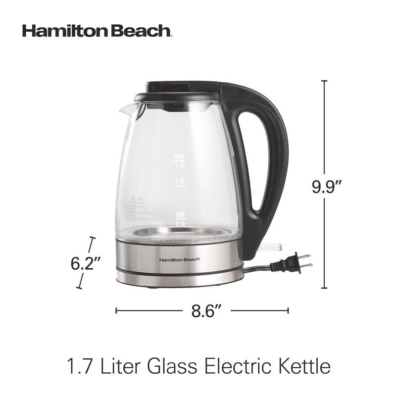Hamilton Beach Hervidor de té eléctrico de 1.7L, caldera de agua y calentador, filtro de malla