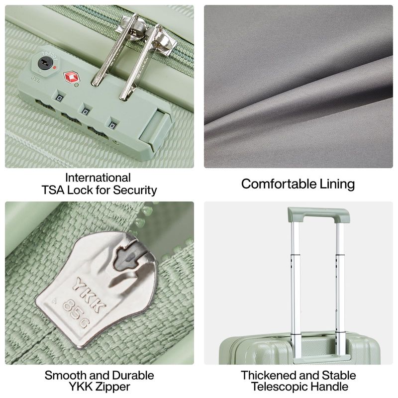 Actualización de accesorios: la piel gruesa de la rueda de TPE hace que la rueda giratoria sea más silenciosa y resistente al desgaste y duradera; la bobina inversa con cremallera YKK suave y resistente evita la ráfaga; el bloqueo de combinación aprobado por la TSA es seguro y conveniente; mango telescópico ergonómico con ajuste de varios pasos.
