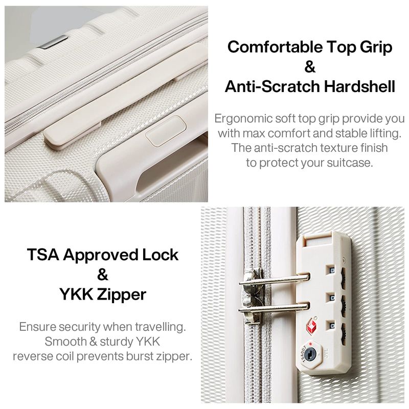 Actualización del material: esta maleta se beneficia del policarbonato alemán Covestro PC resistente al agua, y la superficie única con textura rombia aumentan la resistencia a los arañazos, sin miedo de enviar violento, manteniendo el equipaje hermoso viaje tras viaje.