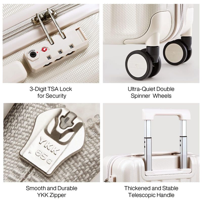 Actualización del material: esta maleta se beneficia del policarbonato alemán Covestro PC resistente al agua, y la superficie única con textura rombia aumentan la resistencia a los arañazos, sin miedo de enviar violento, manteniendo el equipaje hermoso viaje tras viaje.
