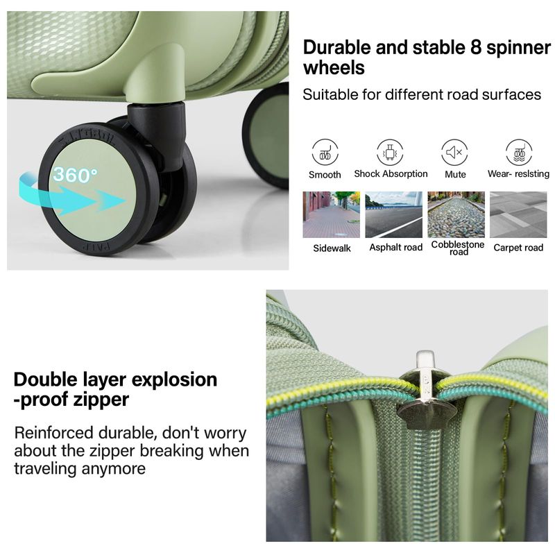 Actualización de accesorios: la piel gruesa de la rueda de TPE hace que la rueda giratoria sea más silenciosa y resistente al desgaste y duradera; la bobina inversa con cremallera YKK suave y resistente evita la ráfaga; el bloqueo de combinación aprobado por la TSA es seguro y conveniente; mango telescópico ergonómico con ajuste de varios pasos.