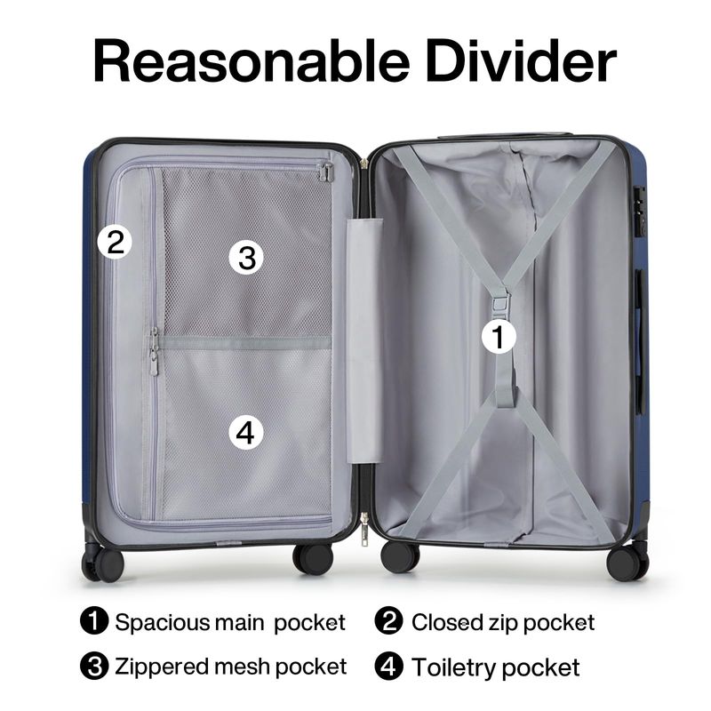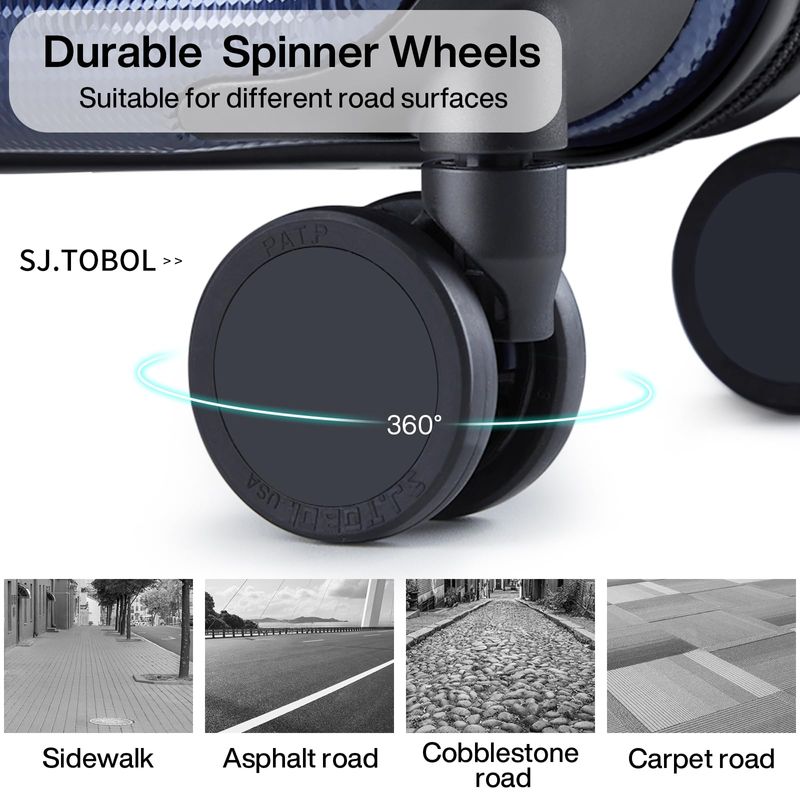 Actualización de accesorios: la piel gruesa de la rueda de TPE hace que la rueda giratoria sea más silenciosa y resistente al desgaste y duradera; la bobina inversa con cremallera YKK suave y resistente evita la ráfaga; el bloqueo de combinación aprobado por la TSA es seguro y conveniente; mango telescópico ergonómico con ajuste de varios pasos.