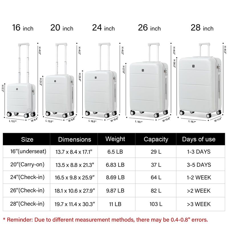 EQUIPAJEVALIJASHanke Maleta de equipaje de viaje rígida con rueda giratoria y bloqueo TSA, funda de viaje ligera
