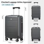 Dimensiones totales 20 pulgadas: 21.3 x 13.8 x 9.3 pulgadas incluyendo ruedas y asas. Peso: 8 libras. Capacidad de embalaje: 40 L. Equipaje de transporte internacional aprobado por aerolíneas y puede adaptarse a contenedores superiores. Equipaje giratorio rígido para viajes de trabajo, viajes de fin de semana.