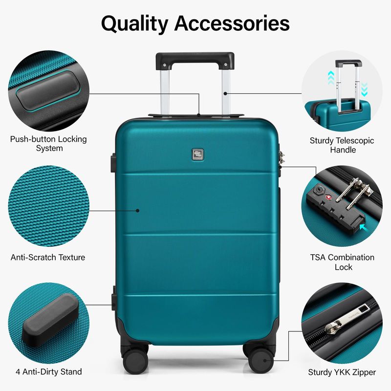 EQUIPAJEVALIJASHanke Maleta de equipaje de viaje rígida con rueda giratoria y bloqueo TSA, funda de viaje ligera