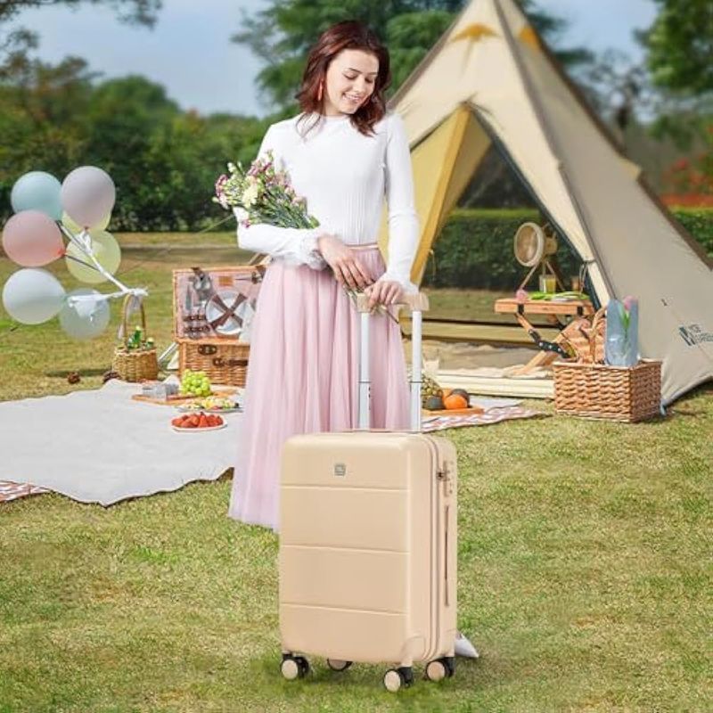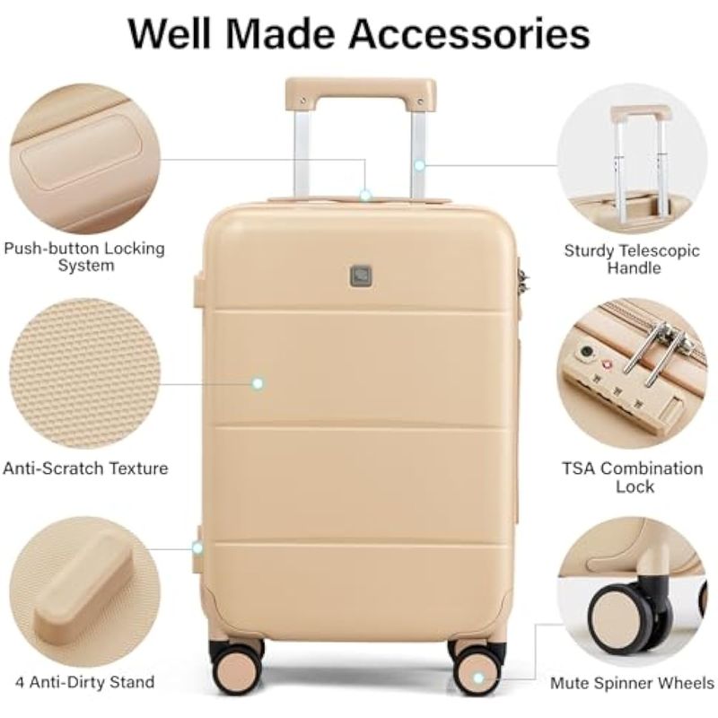 HANKE MALETA DE EQUIPAJE DE VIAJE RíGIDA CON RUEDA GIRATORIA Y BLOQUEO TSA, FUNDA DE VIAJE LIGERA PARA PC, CUBA SAND, EQUIPAJE DE MANO RíGIDO CON RUEDAS GIRATORIAS
