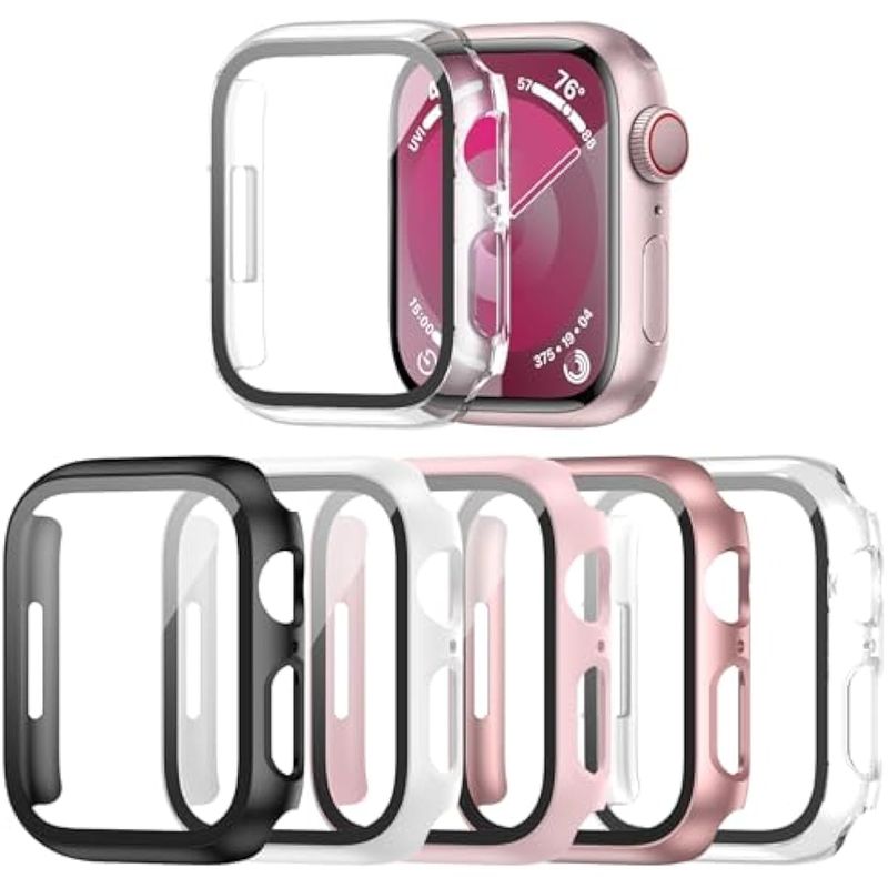 TELEFONIASMARTWATCHHaojavo Paquete de 5 fundas con protector de pantalla de vidrio templado para Apple Watch Series 9,