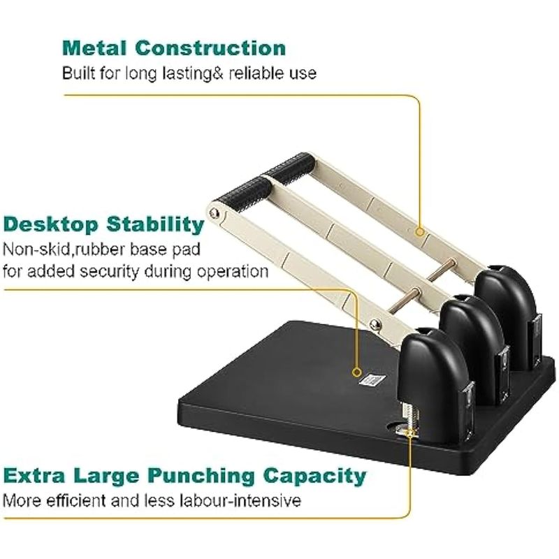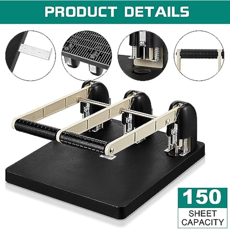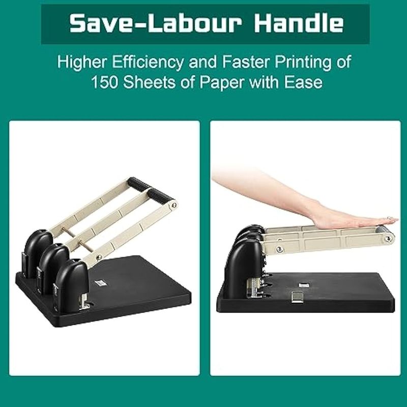 Harloon Perforadora de 3 agujeros para carpeta de metal, capacidad de 150 hojas, 13 x 12.2 x 6.2