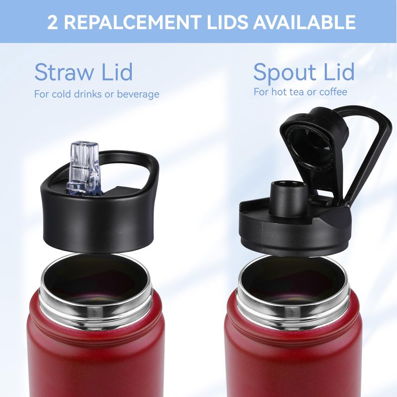 Mantente fresco durante todo el día: es fácil mantenerte hidratado en emocionantes aventuras con una botella tan versátil. El líquido puede ser fresco en su mejor sabor durante todo un día. La tapa con popote es ideal para ciclismo, senderismo y gimnasio, mientras que la tapa de boquilla es perfecta para la playa, camping y caza.