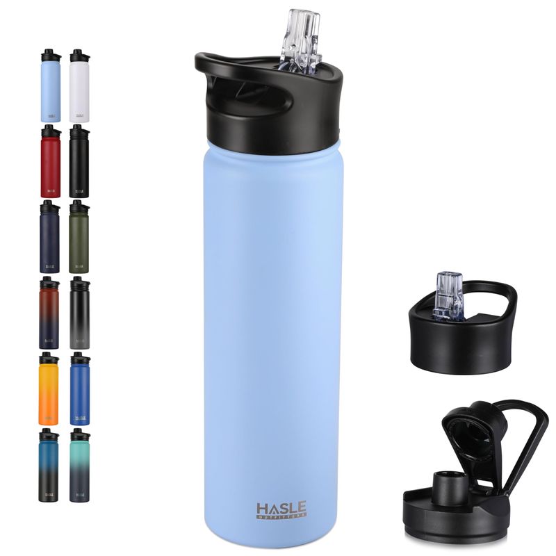 HASLE OUTFITTERS BOTELLA DE AGUA DE ACERO INOXIDABLE DE 40 ONZAS, AISLADA AL VACíO, DE DOBLE PARED, A PRUEBA DE FUGAS, CON 2 TAPAS (TAPA CON POPOTE Y BOQUILLA), TAZA TéRMICA PARA MANTENER EL FRíO Y EL CALOR (AZUL, 1)