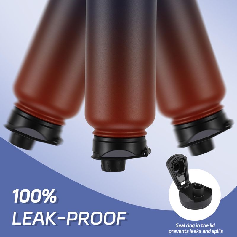 Aislamiento al vacío de doble pared: nuestras botellas de agua con popote están fabricadas con tecnología de aislamiento al vacío de doble pared, mantiene las bebidas frías hasta 24 horas y calientes hasta 12 horas. Hecho de plástico no tóxico sin BPA y acero inoxidable 188 duradero de grado alimenticio. La capa antideslizante garantiza que te cuelgues en tu botella durante las actividades más difíciles.