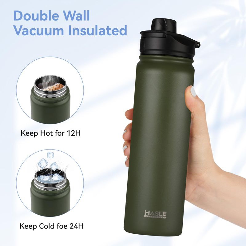 HASLE OUTFITTERS Botella de agua de acero inoxidable de 40 onzas, aislada al vacío, de doble pared,