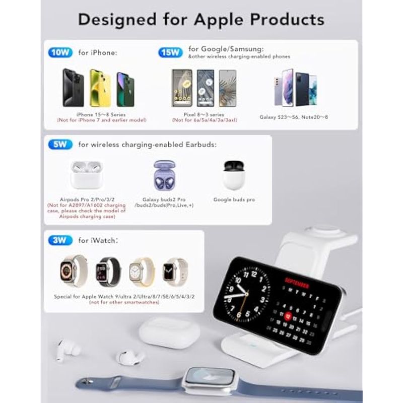 HATALKIN Estación de carga inalámbrica 3 en 1 compatible con Apple Products múltiples dispositivos