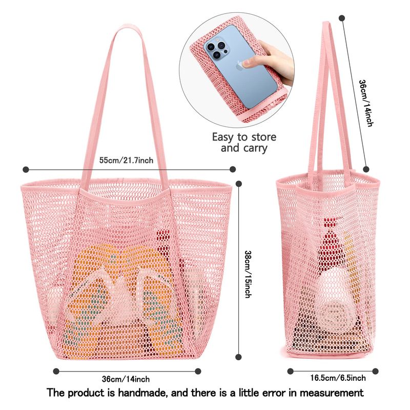 hatisan Bolsa de playa de malla, bolsas de playa mejoradas para mujer, bolsa de malla, bolsa hobo,