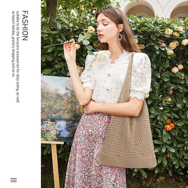 hatisan Bolsas de ganchillo para mujer, bolsa de playa de verano, bolsa de mano estética, bolsa - Pardo