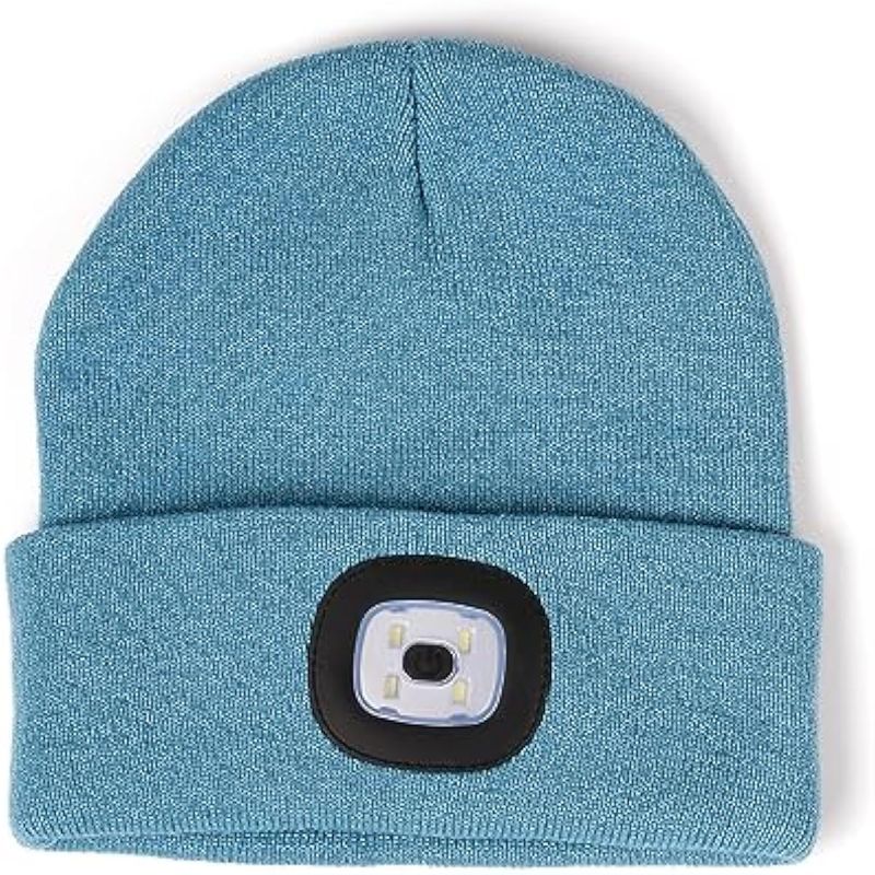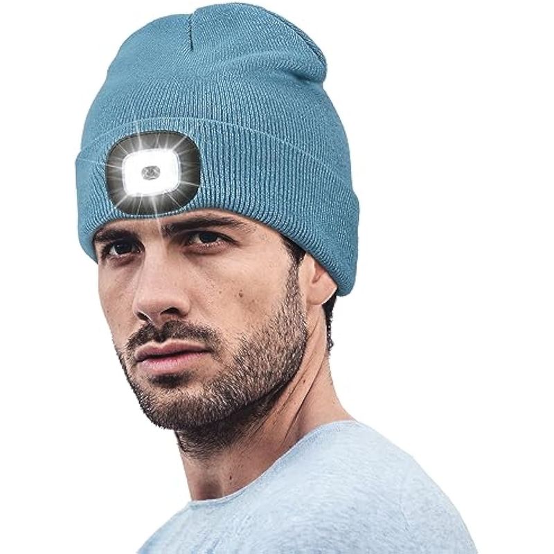 HATLIGHT GORRO UNISEX CON LUZ, LINTERNA FRONTAL MANOS LIBRES RECARGABLE POR USB, GORRO DE PUNTO, RELLENO DE CALCETINES DE NAVIDAD, REGALOS PARA HOMBRES, MARIDO, PAPá, AZUL