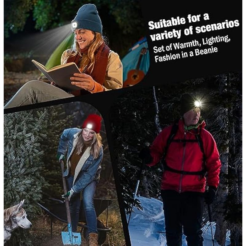 Regalos de invierno: Nuestros gorros con luz son excelentes rellenos de calcetines, disponibles en varios colores. Combinando calidez e iluminación, estas gorras LED son un maravilloso regalo para hombres y mujeres en cumpleaños, Navidad, Acción de Gracias o Año Nuevo. La luz LED desmontable simplifica la limpieza, añadiendo a su atractivo como un regalo práctico y considerado.