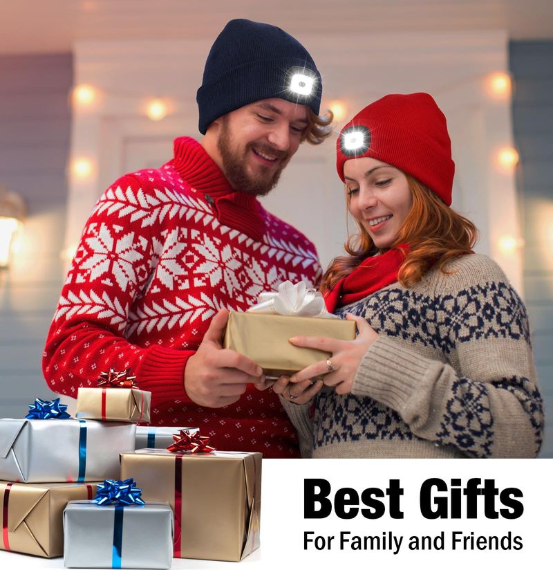 Hatlight Gorro unisex con luz, linterna frontal manos libres recargable por USB, gorro de punto,
