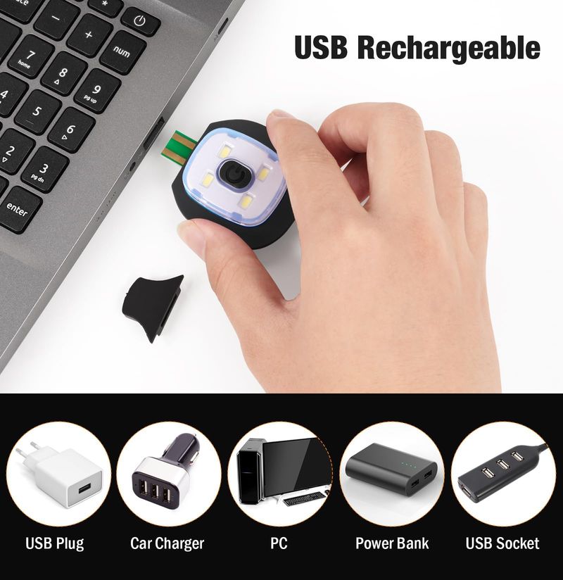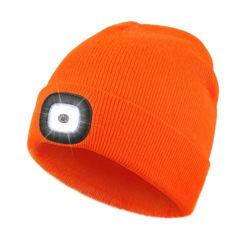 Hatlight Gorro unisex con luz, linterna frontal manos libres recargable por USB, gorro de punto,