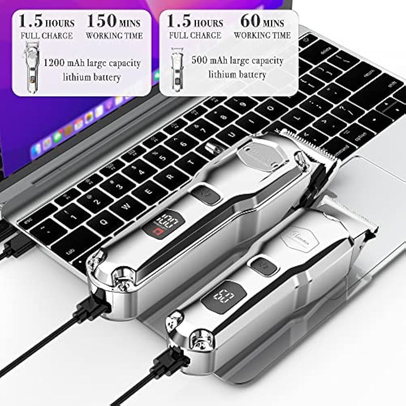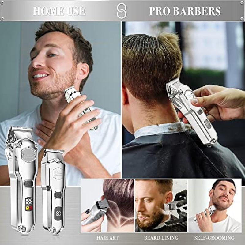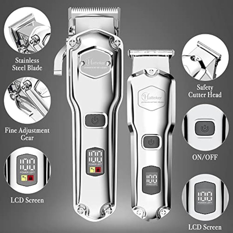 HATTEKER JUEGO DE CORTAPELOS Y RECORTADORA DE PELO PARA HOMBRES, IPX7, IMPERMEABLE, INALáMBRICA, PARA CORTAR EL CABELLO, KIT DE CORTE DE CABELLO CON HOJA EN T, RECORTADORA DE BARBA, CORTADORA DE BARBA, PARA NIñOS, PROFESIONAL, RECARGABLE POR USB (PLATEADO)