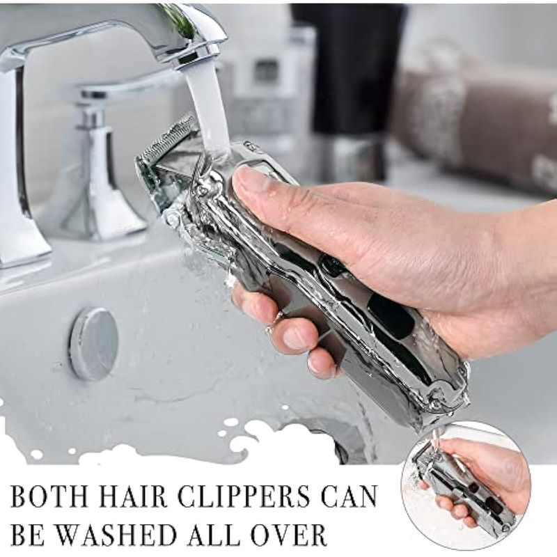 ?100 impermeable tanto para cortapelos como para recortadora y pantalla LCD?Tanto la cortadora de pelo como la recortadora adoptan un diseño lavable en todo el cuerpo, fácil de limpiar. Después de usarlo en la ducha, sigue las instrucciones de limpieza y mantenimiento. Para evitar la entrada de vapor de agua residual.