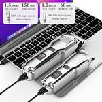 Cuchilla de acero inoxidable de precisión e inalámbrica: la hoja utiliza una hoja de acero inoxidable de precisión, que puede mantener la nitidez a largo plazo sin tirar de tu cabello. El cabezal de corte de seguridad con una superficie lisa protege tu piel de la irritación y los cortes. Batería recargable integrada de alta calidad con 1.5 horas de carga rápida que ofrece 150 minutos de tiempo de funcionamiento para cortadora de cabello y 60 minutos de tiempo de funcionamiento para recortadora de pelo.