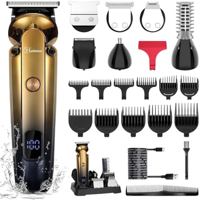 Hatteker Kit de recortadora de barba para hombre, afeitadora eléctrica, cortadora de pelo