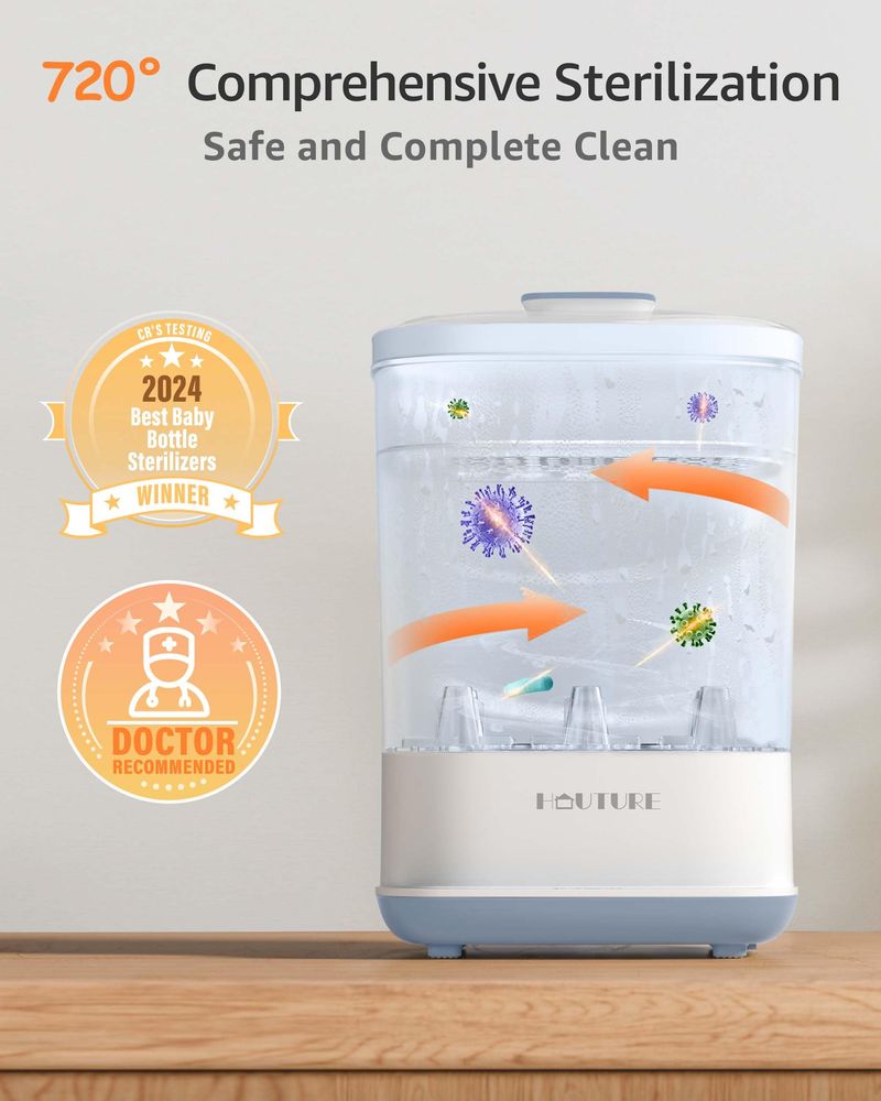 HAUTURE Esterilizador y secadora de biberones, esterilizador de vapor eléctrico 6 en 1 para