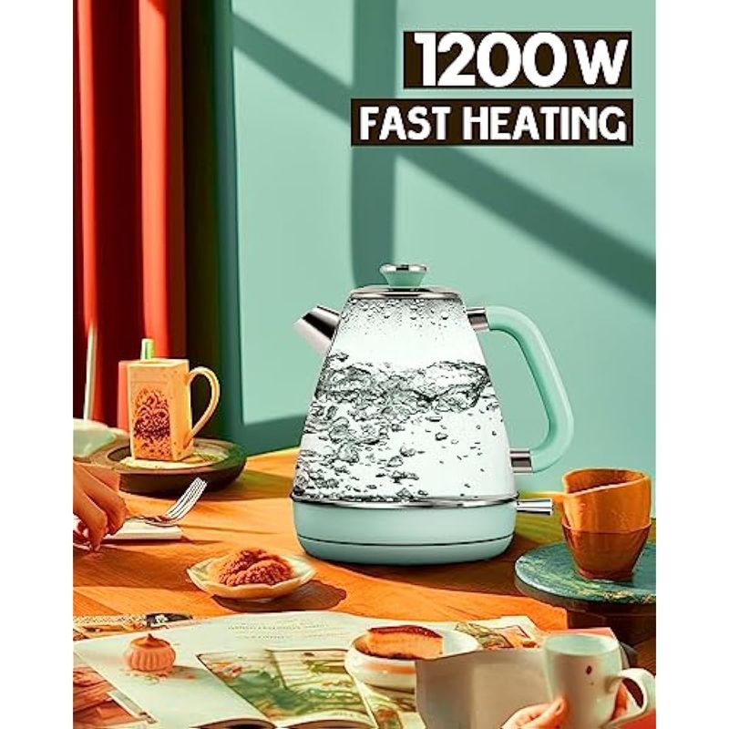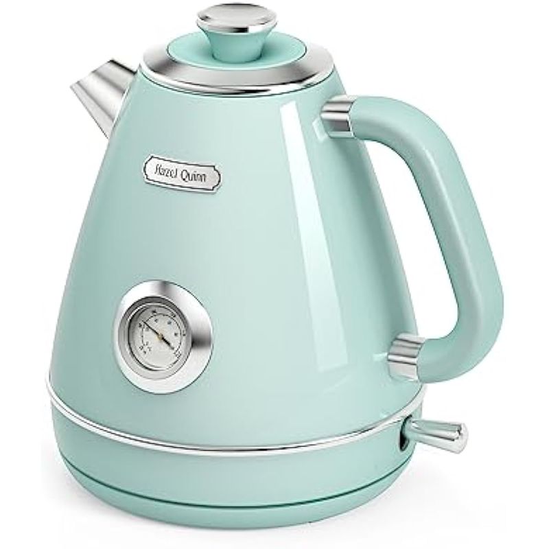 Hazel Quinn Tetera eléctrica retro, 1.7 litros/57.5 onzas, con termómetro, acero inoxidable, 1200