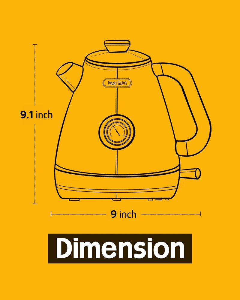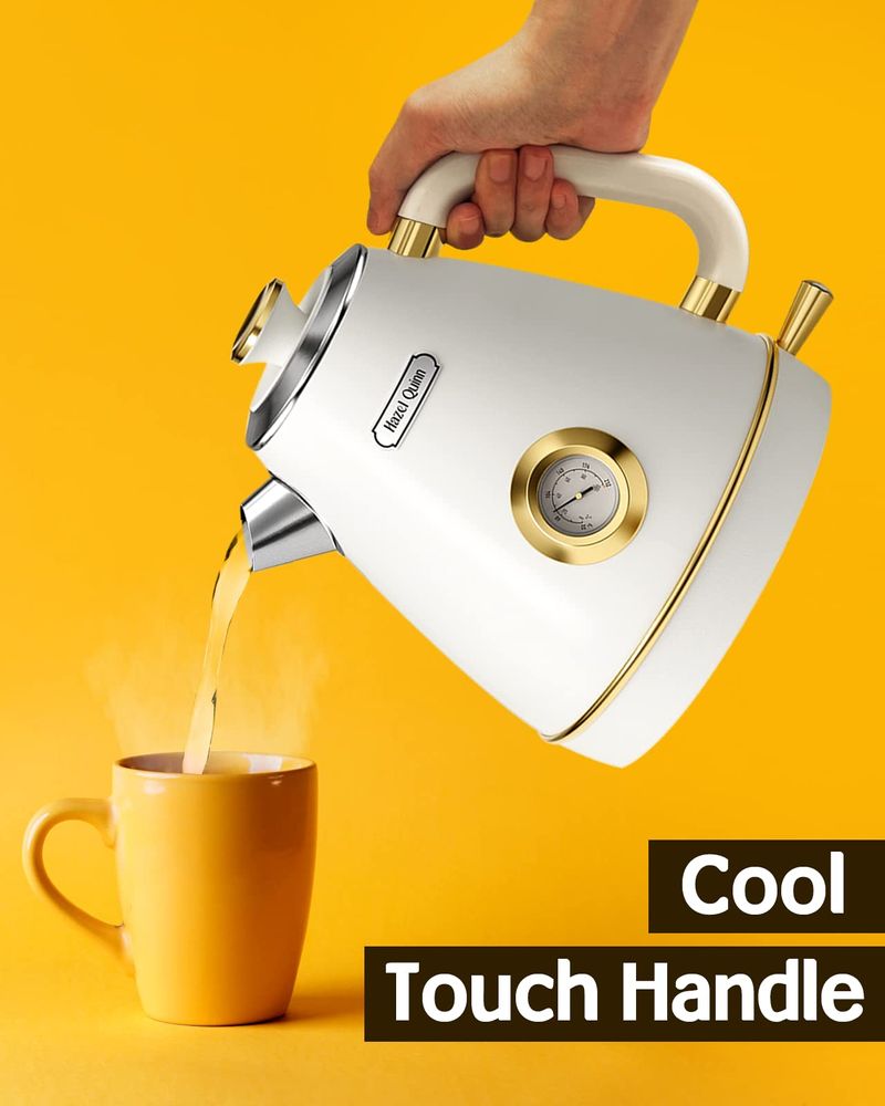 Hazel Quinn X Eduardo Recife Collaboration - Hervidor de té eléctrico retro con termómetro, 1.7