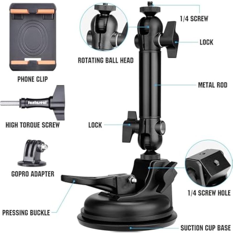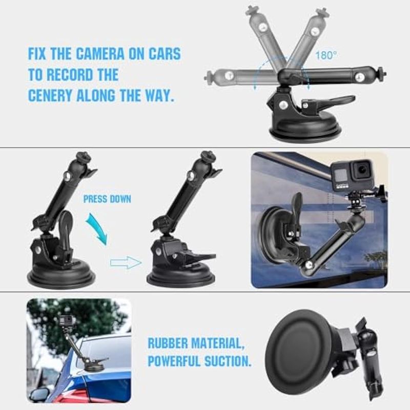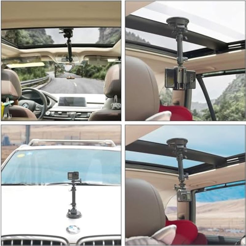 Heavy Duty ?100mm Suction Cup w/Adjustable 2-Ball-Head Action Camera Dash Cam Phone Car Mount