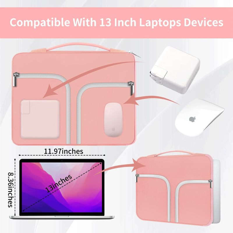 Bolsillo adicional para dispositivos: esta funda para Chromebook contiene dos compartimentos más pequeños para guardar algunos objetos pequeños como bolígrafos, cables, cargadores, batería externa, mouse y otros accesorios para tabletateléfono