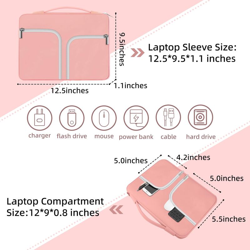4: Dimensiones internas: 12.5 x 9 x 1 in El tamaño máximo compatible de 12.5 in. Compatible con la mayoría de modelos de portátiles de 11 a 12.5 a 13 pulgadas.