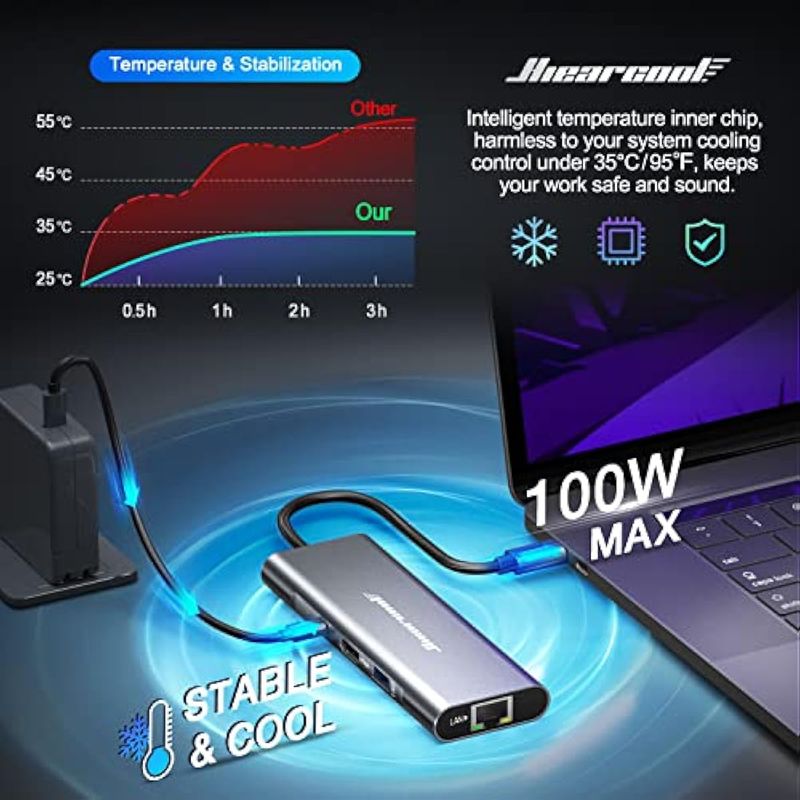 HIEARCOOL HUB ETHERNET USB C, ADAPTADOR HDMI USB C 4K A 60, ADAPTADOR MULTIPUERTO TIPO C 8 IN1 DE 100 W PD USB C DOCK DONGLE ESTACIóN DE ACOPLAMIENTO COMPATIBLE CON MACBOOK PRO AIR APPLE IPAD PRO STEAM DECK DELL HP LENOVO