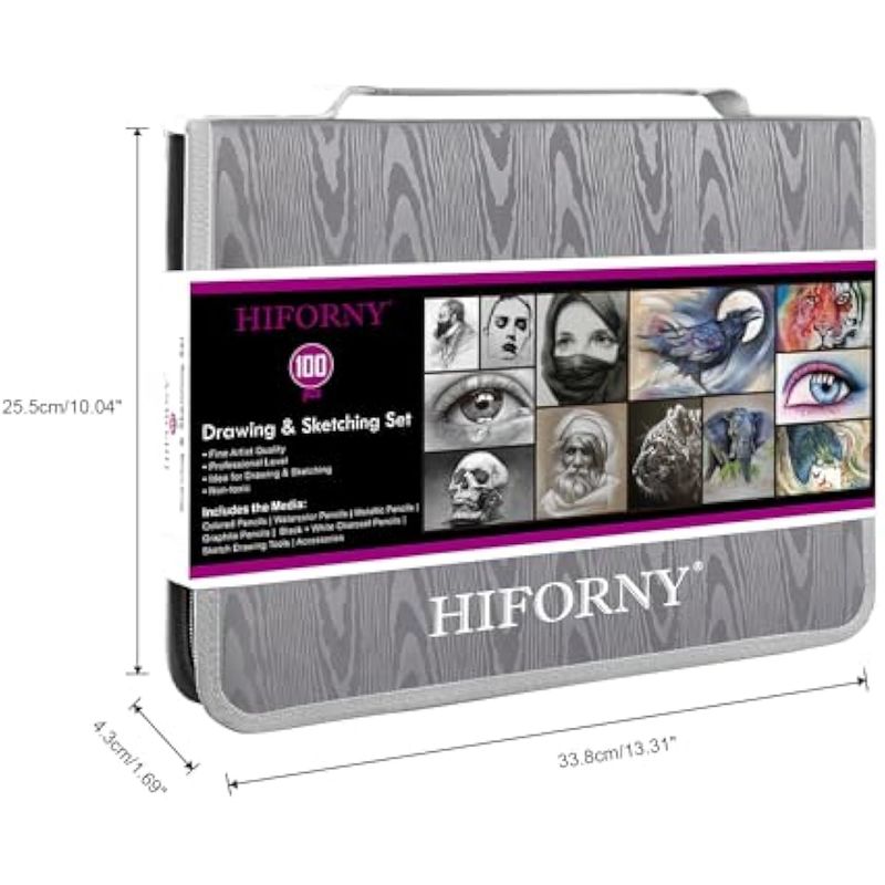 ARTE, LIBRERÍA Y OFICINAMATERIALES DE ARTEHIFORNY Juego de 100 piezas de dibujo y bocetos, suministros de arte profesionales con grafito,