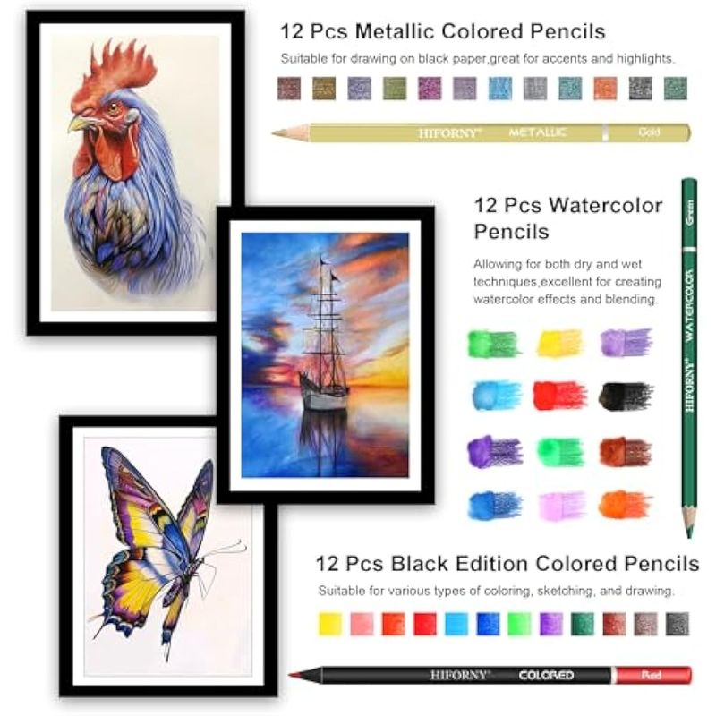ARTE, LIBRERÍA Y OFICINAMATERIALES DE ARTEHIFORNY Juego de 100 piezas de dibujo y bocetos, suministros de arte profesionales con grafito,