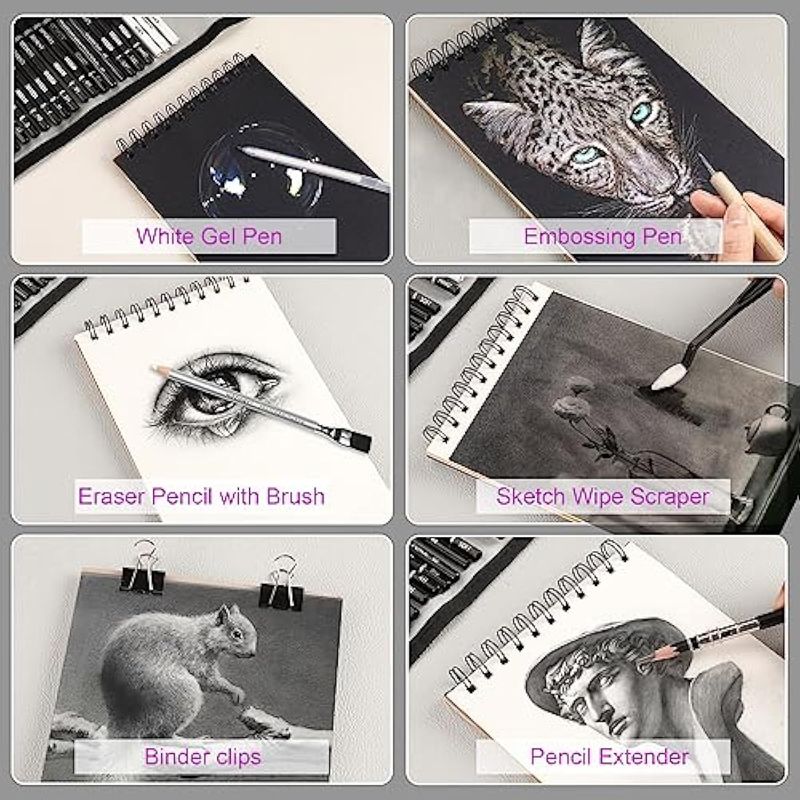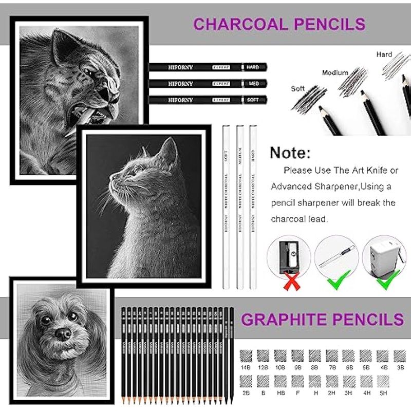 HIFORNY Juego de 60 lápices de dibujo, lápices de bocetos, suministros de arte con cuaderno de