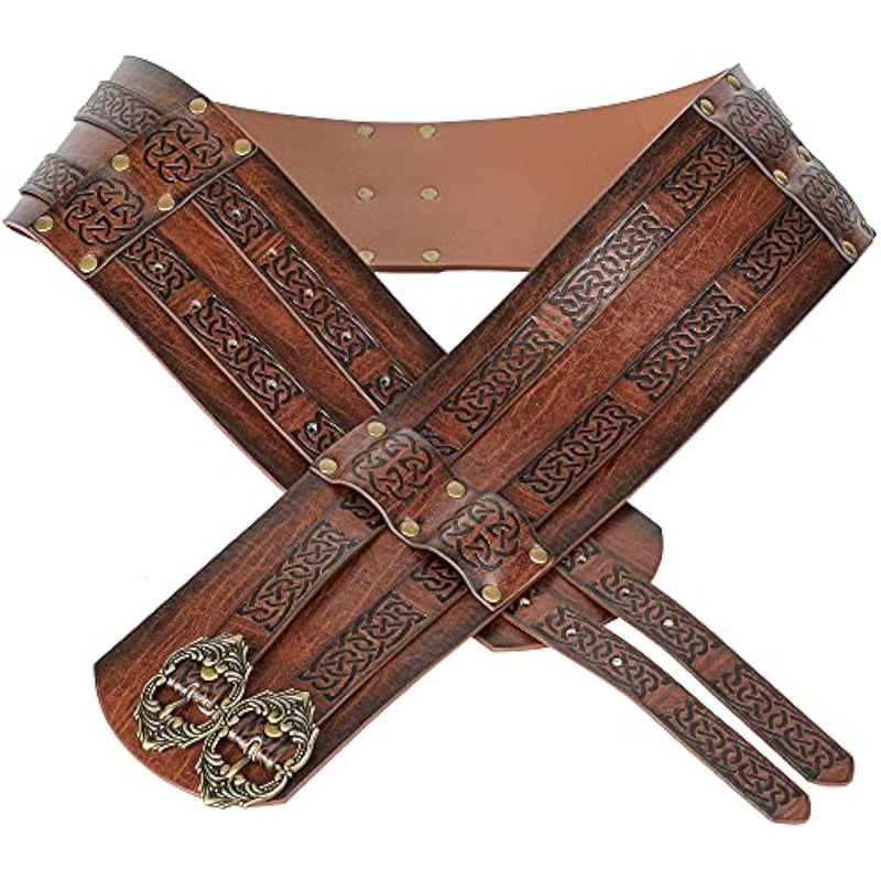HiiFeuer Cinturón ancho vikingo, cinturón medieval, de piel sintética, cinturón de corsé de - Pardo