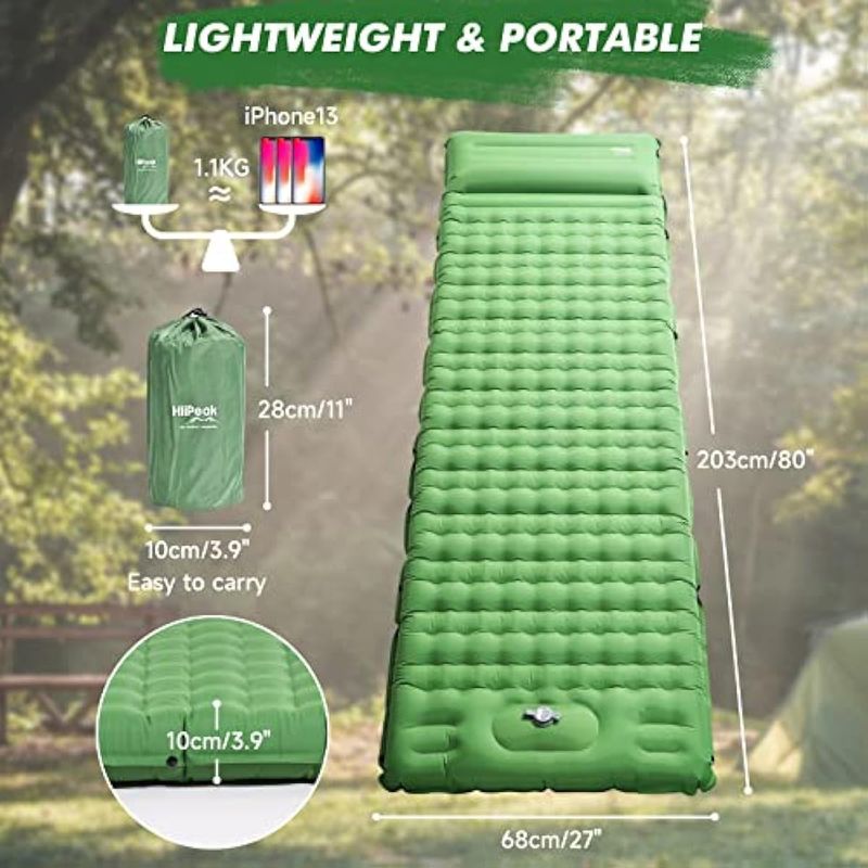 HIIPEAK ALFOMBRILLA DE CAMPAMENTO DE APOYO FUERTE, COLCHóN INFLABLE PARA DORMIR DE 3.9 PULGADAS DE GROSOR CON ALMOHADA, INFLADO RáPIDO, ULTRALIGERO Y PORTáTIL, CAMA DE DORMIR PARA MOCHILEROS, SENDERISMO, PICNIC