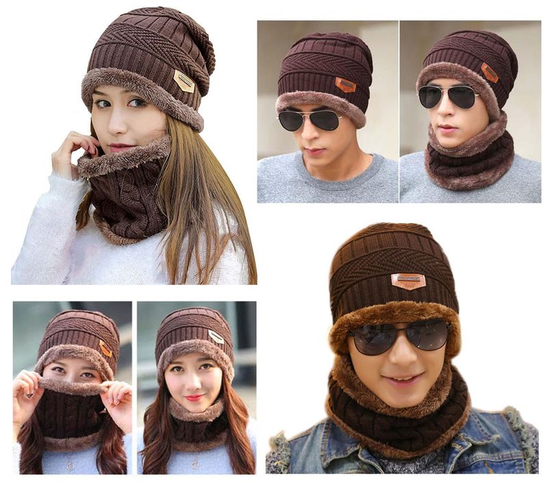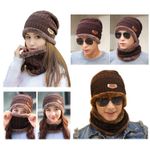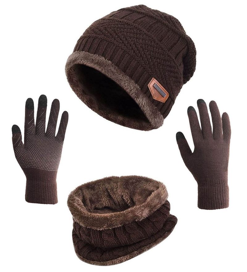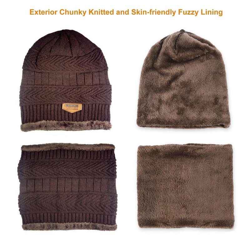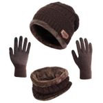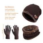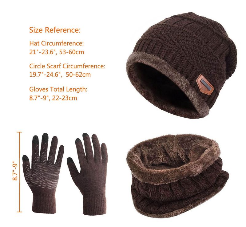 HINDAWI Winter Hat Scarf Gloves Slouchy Beanie Snow Knit Skull Cap Touch Screen Mittens Circle - Pardo