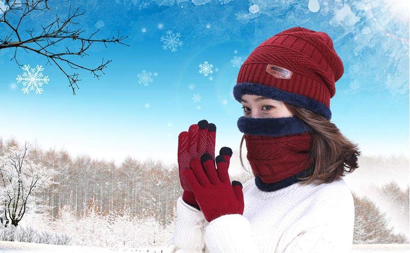 HOGARINDUMENTARIA Y ACCESORIOSHINDAWI Winter Hat Scarf Gloves Slouchy Beanie Snow Knit Skull Cap Touch Screen Mittens Circle