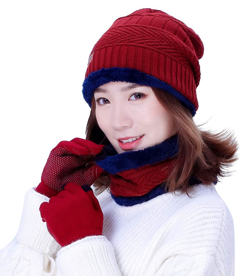HINDAWI WINTER HAT SCARF GLOVES SLOUCHY BEANIE SNOW KNIT SKULL CAP TOUCH SCREEN MITTENS CIRCLE SCARVES FOR WOMEN