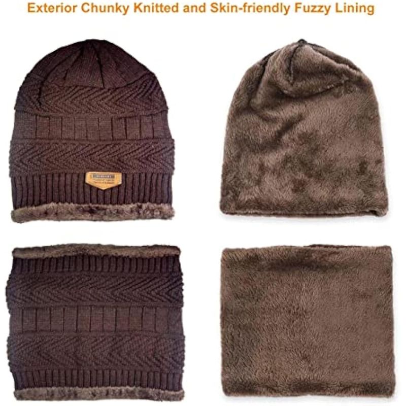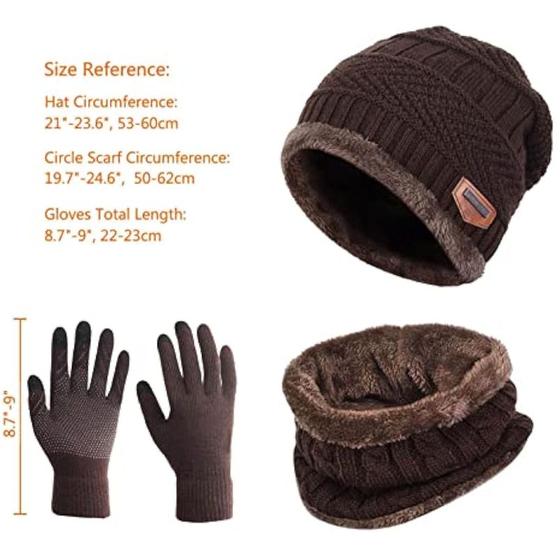 HINDAWI Winter Hat Scarf Gloves Slouchy Beanie Snow Knit Skull Cap Touch Screen Mittens Circle - Pardo