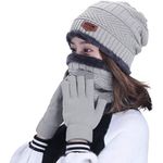 HINDAWI WINTER HAT SCARF GLOVES SLOUCHY BEANIE SNOW KNIT SKULL CAP TOUCH SCREEN MITTENS CIRCLE SCARVES FOR WOMEN