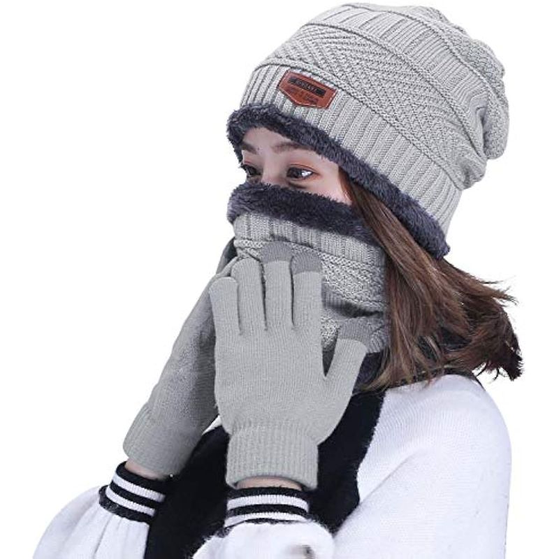 HOGARINDUMENTARIA Y ACCESORIOSHINDAWI Winter Hat Scarf Gloves Slouchy Beanie Snow Knit Skull Cap Touch Screen Mittens Circle