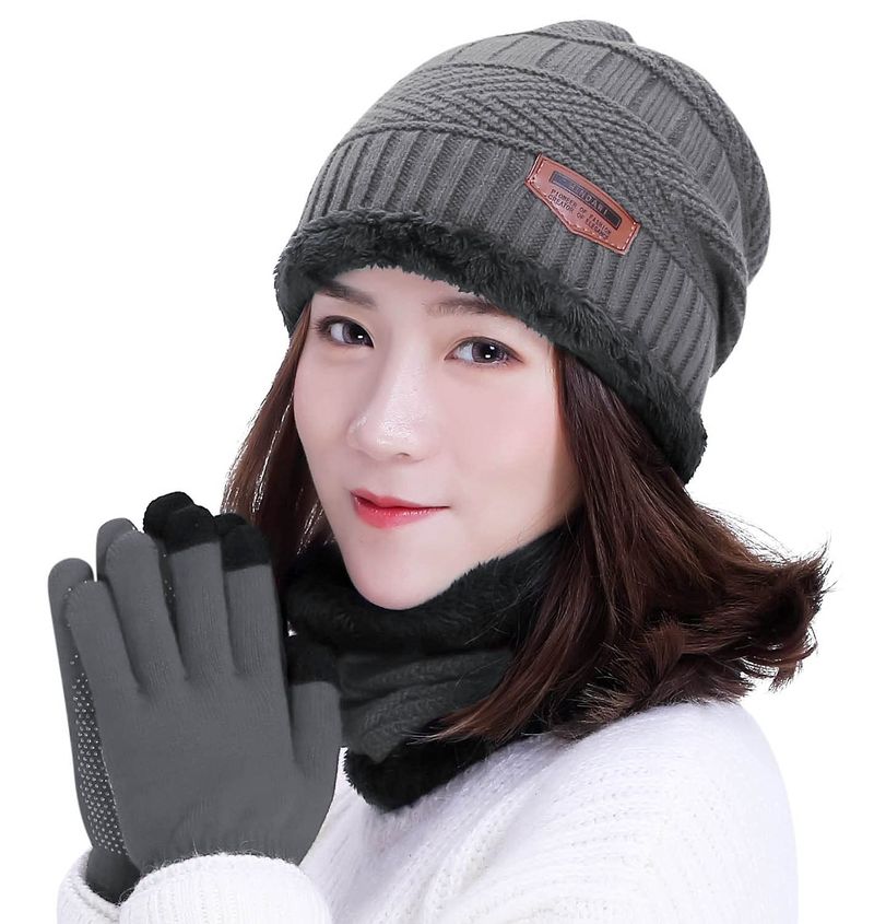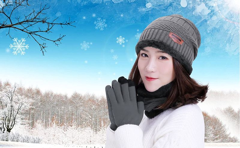 HINDAWI WINTER HAT SCARF GLOVES SLOUCHY BEANIE SNOW KNIT SKULL CAP TOUCH SCREEN MITTENS CIRCLE SCARVES FOR WOMEN