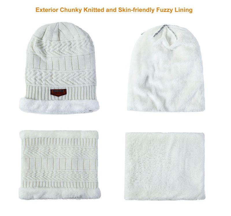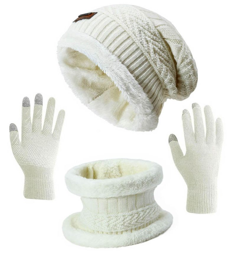 HINDAWI Winter Hat Scarf Gloves Slouchy Beanie Snow Knit Skull Cap Touch Screen Mittens Circle