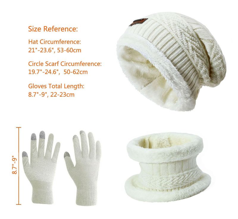 HOGARINDUMENTARIA Y ACCESORIOSHINDAWI Winter Hat Scarf Gloves Slouchy Beanie Snow Knit Skull Cap Touch Screen Mittens Circle