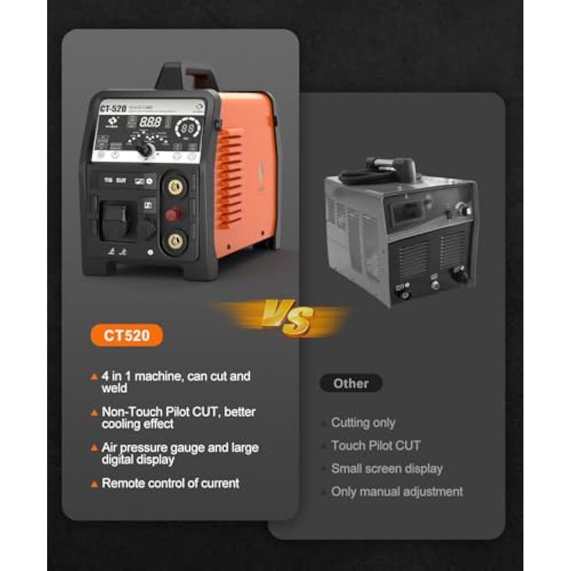 Pantalla digital LED y 2T4T: puedes ajustar el modo de corriente y corte de acuerdo con la pantalla digital LED y leer el valor de presión de aire más fácilmente. El corte por plasma tiene modos de corte semiautomáticos y automáticos, y puede cambiar 2T4T a través de la pantalla de visualización para satisfacer sus necesidades y opciones.